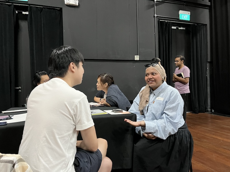 Aini at the Taman Jurong Youth Network offering arts-based engagement approaches they could adopt for their own programmes.